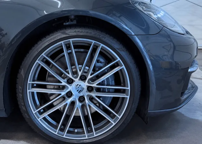 Once prepped, the vehicle undergoes a hand polish, followed by the application of a 6–8 month ceramic sealant for durable paint protection. Exterior glass is treated with a 2–3 month ceramic, while exterior plastics are dressed for a refined finish.